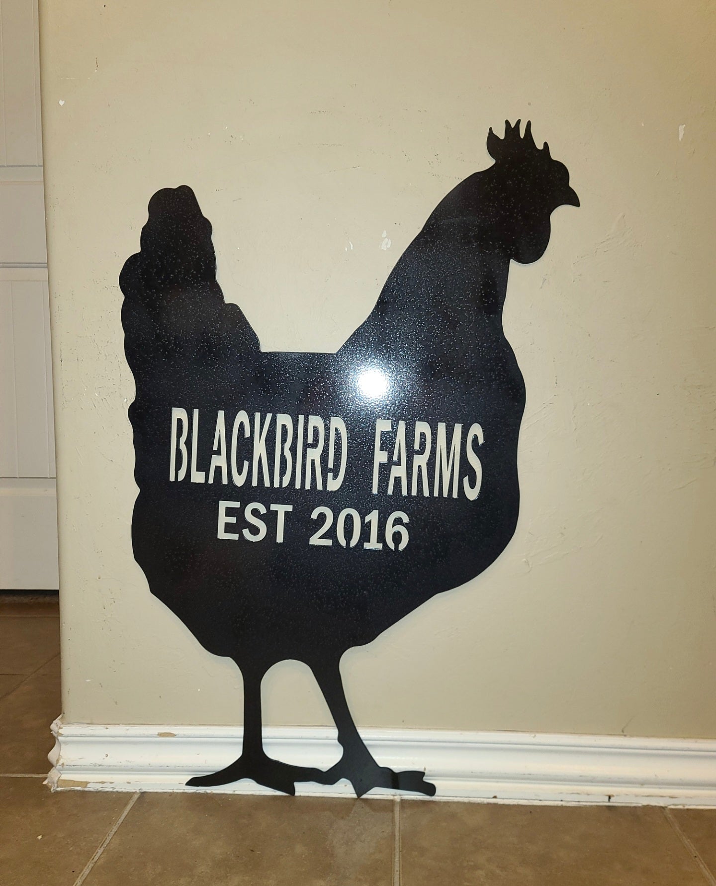 "Absolutely love our chicken sign! It’s hanging on the coop and we’ve already had three neighbors ask where we got it. Beautiful quality and fast shipping"